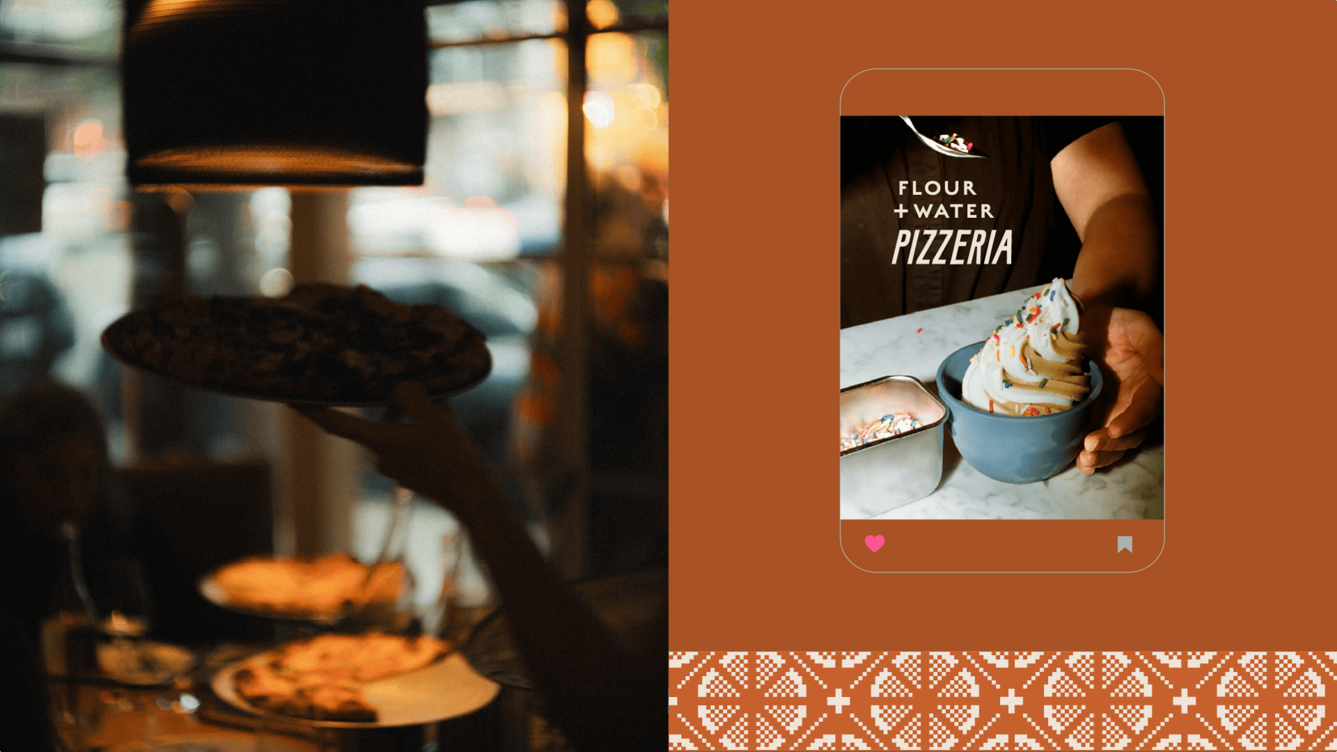 When Flour + Water Pizzeria moved to San Francisco’s historic North Beach, a visual identity was reimaged with itssister restaurants, Flour + Water and Flour + Water Pasta Shop, while giving the pizzeria a unique, and family-friendly, nostalgic vibe.